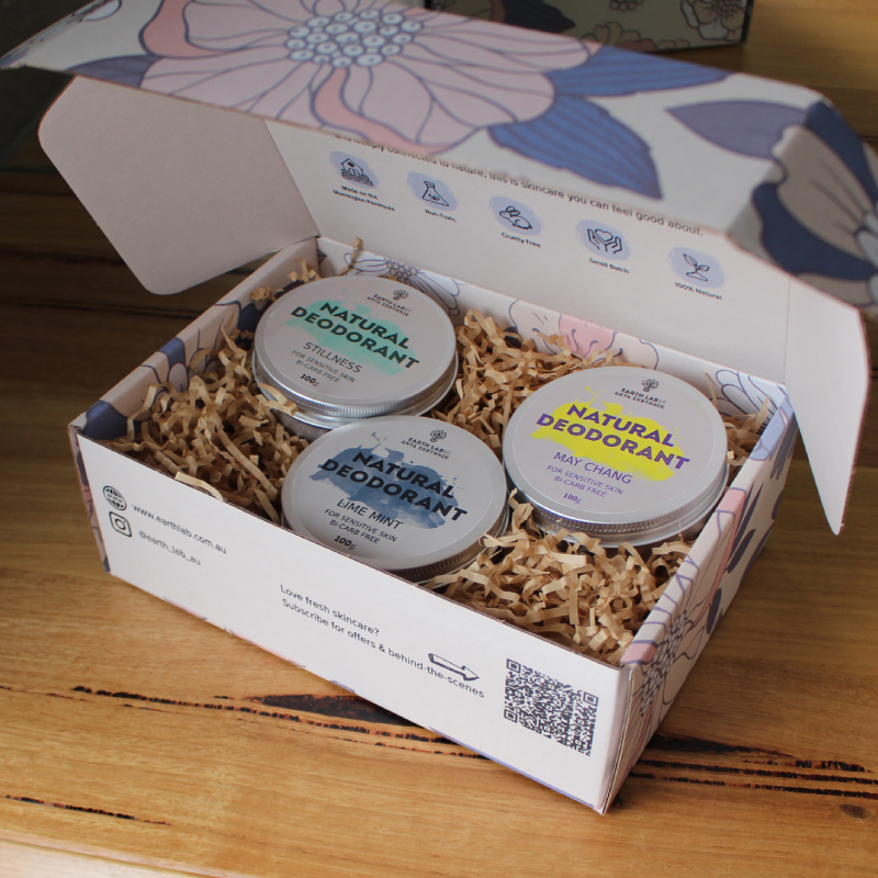 A trio of our most loved bicarb free deodorants gathered into a thoughtful gift pack. With full size 100g tins, gentle magnesium based formulas and pure essential oil scents, this collection makes a beautiful and practical gift for those with sensitive skin or anyone choosing a natural approach to everyday freshness.