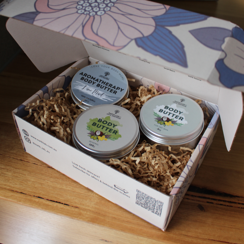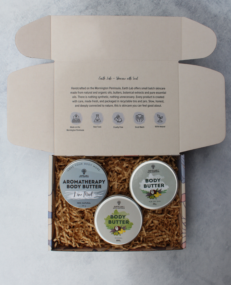 This gift pack features three of our most loved body butters, each made with nourishing natural oils and butters and whipped into a soft and fluffy cream. These butters have been customer favourites for years, known for their gentle feel, beautiful scents and the way they leave the skin deeply moisturised and comforted. It is a thoughtful gift for someone who loves natural skincare or a lovely treat for yourself.